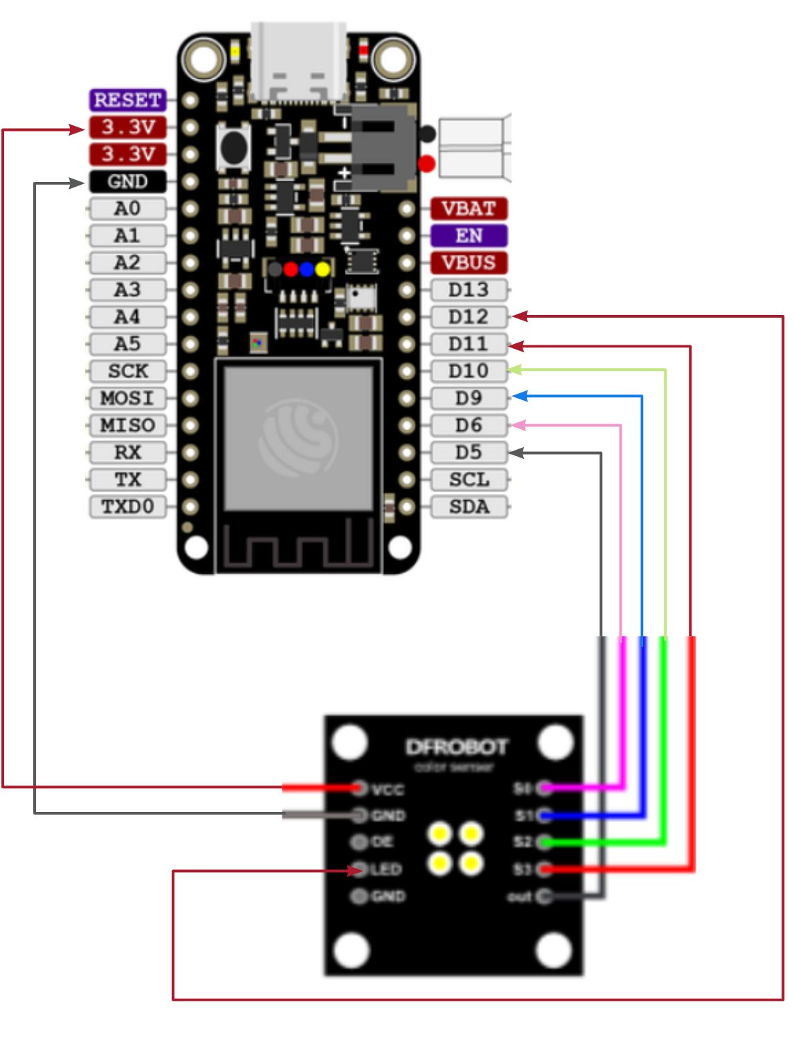 color = ColorSensor(digitalio.DigitalInOut(board.D6), digitalio.DigitalInOut(board.D9), digitalio.DigitalInOut(board.D10), digitalio.DigitalInOut(board.D11), digitalio.DigitalInOut(board.D12), digitalio.DigitalInOut(board.D5))