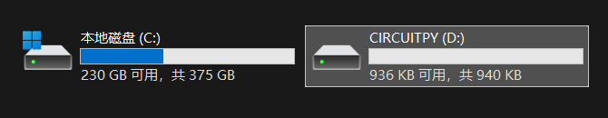 2. 刷入 adafruit-circuitpython-adafruit_feather_esp32s3_reverse_tft-en_US-10.0.3.uf2 后能进入 circuitpython, 并且对应的代码分区, 后续的传感器都基于这个版本的固件进行代码开发验证。