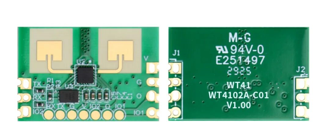 这套方案的核心硬件是唯创知音WT4102A-C01L型24G微波雷达传感器。这颗仅23mm×15.6mm×1.0mm的芯片,却蕴含着惊人的技术能量。